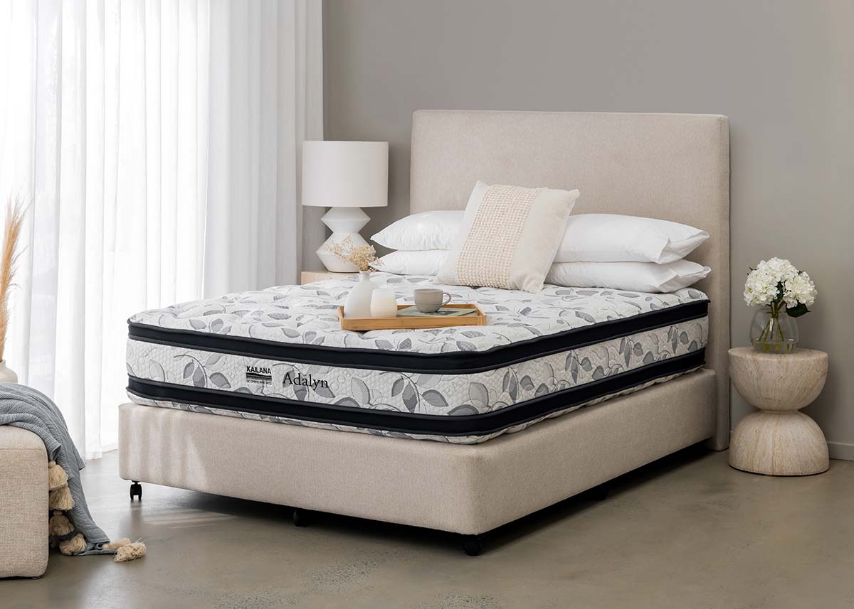 Unlike traditional innerspring mattresses, the Adalyn is part of the Kailana No Spring Range, relying on layered premium foams for strength and comfort. Its high-resilience foam support core offers stability and durability, while the double-sided design extends mattress life. This construction eliminates the bounce of springs while providing even support across the entire mattress surface.