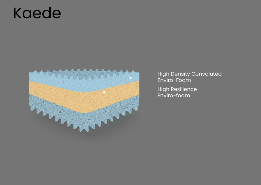 The Kaede Mattress is engineered with multi-density Enviro-foam, including a convoluted foam layer that promotes airflow and reduces pressure on key areas of the body. This ensures balanced support and a more restful night’s sleep.